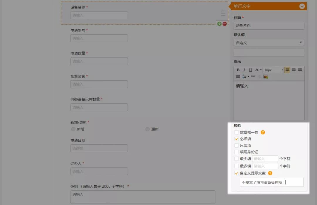 表单字段属性的校验中,新增自定义错误提示语文案。