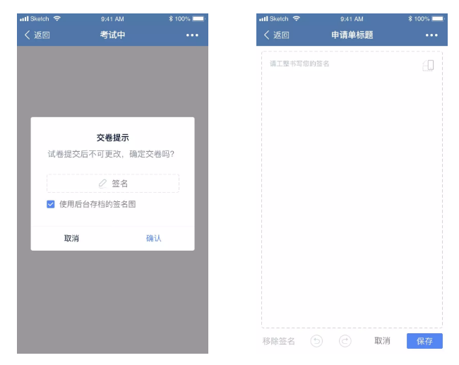 可设置提交考卷时员工需手写签名,全面规范考试环节,让考生对所答考卷负责。