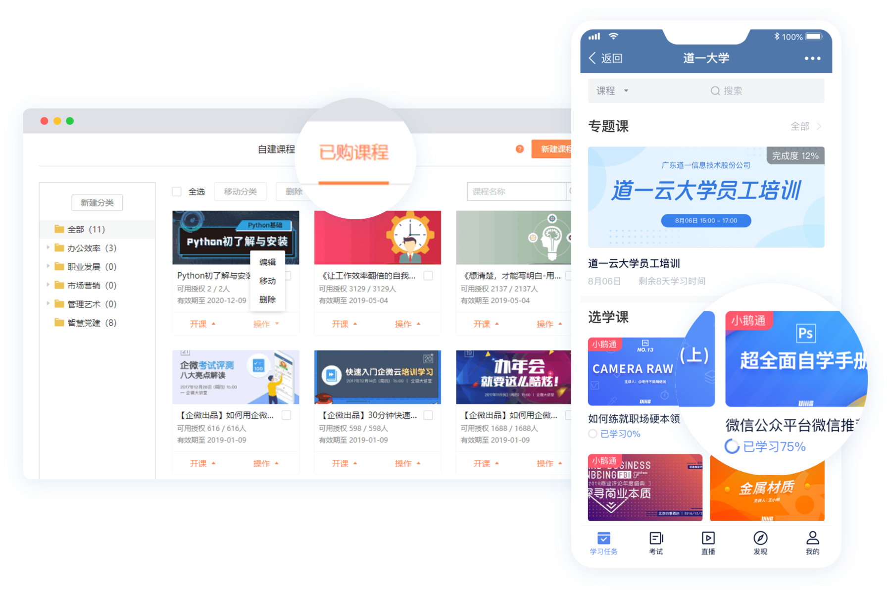 事不宜迟,赶快登录后台,进入课程商城,为企业和员工挑选最合适的课程吧。