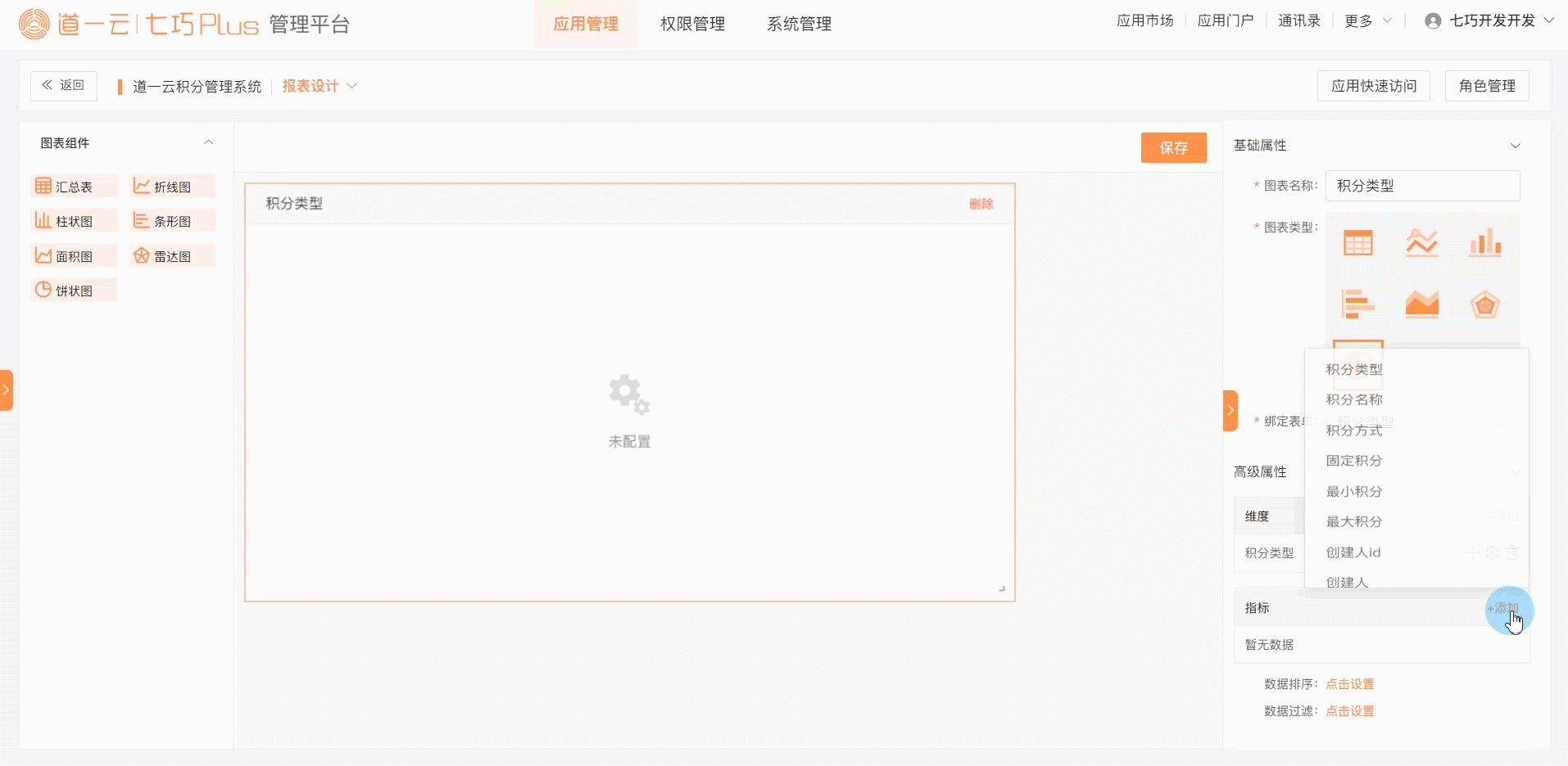 配置时,即可在画布区预览已配置的图表统计效果,并且图表数据会实时刷新,方便快速发现配置问题,便于及时修改。