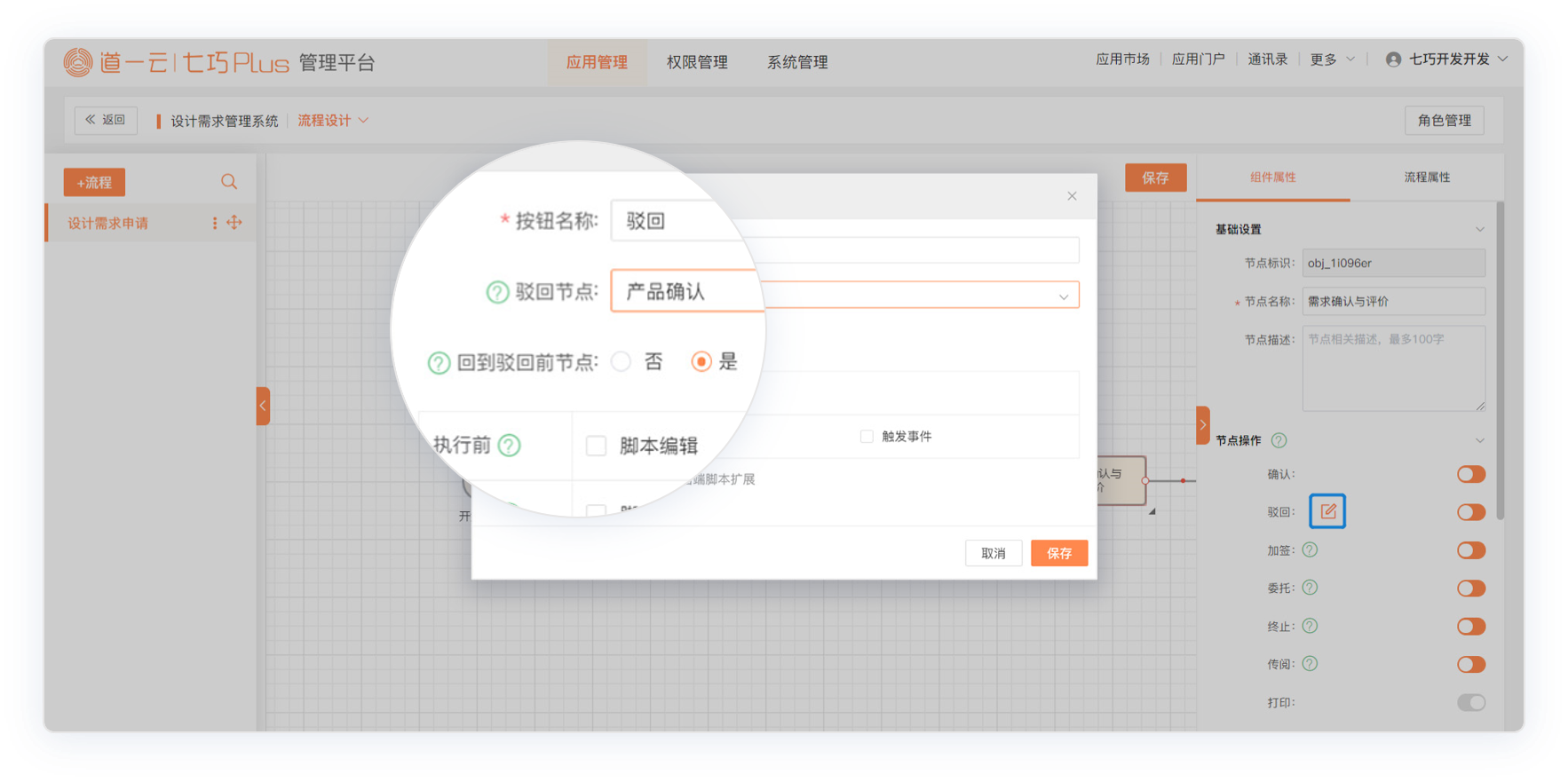 ① 增加驳回到指定环节范围设置