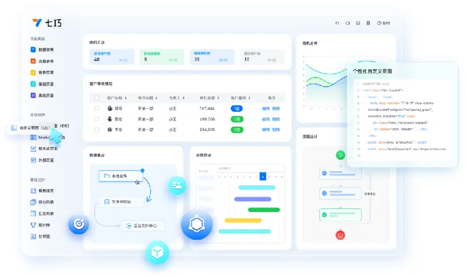 如今,IT逐渐从传统的支持者转变为业务创造者,不仅承担着支持和优化业务流程的责任,还能通过创新和技术驱动的解决方案为企业创造更多价值。杏盛娱乐注册七巧低代码提供的丰富组件和预构建模块,可以根据具体业务需求进行定制化开发,具备灵活调整和快速迭代新应用的能力,让IT驱动业务增长,致力于追求卓越,持续创新的技术目标,在信息化建设的道路上,将继续为企业提升各类数字化建设能力贡献力量。