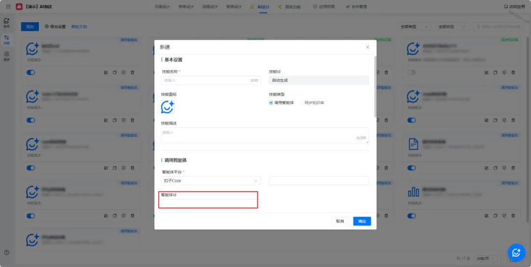 ➡️ 回到七巧「应用内部-AI设计-技能」,填写参数并选择问答/填单/问数等场景。