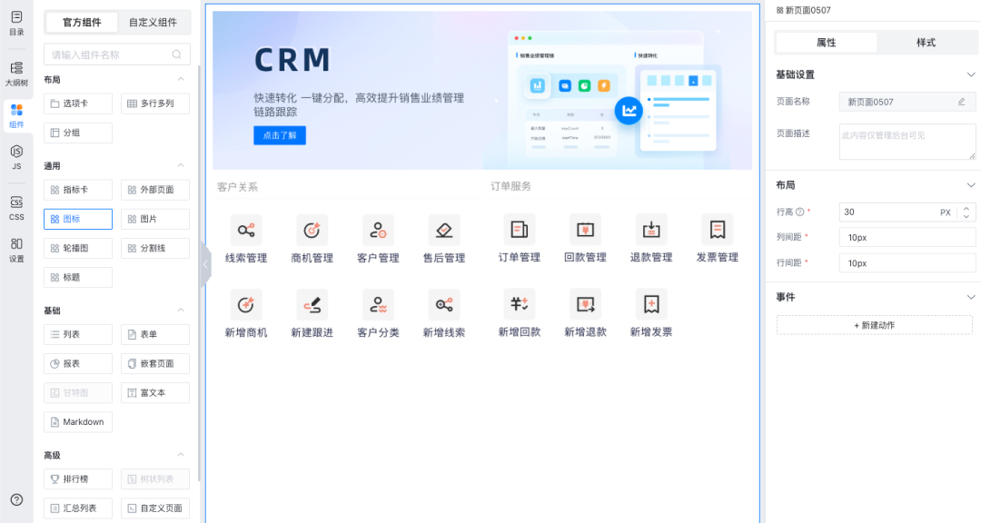 ✓ 低门槛自主搭建:无需代码基础,业务人员通过拖拽组件、简易配置即可完成订单相关页面的设计与调整,短时间内搭建并同步至对外平台,摆脱对技术团队的依赖,避免因排期滞后影响业务推进。