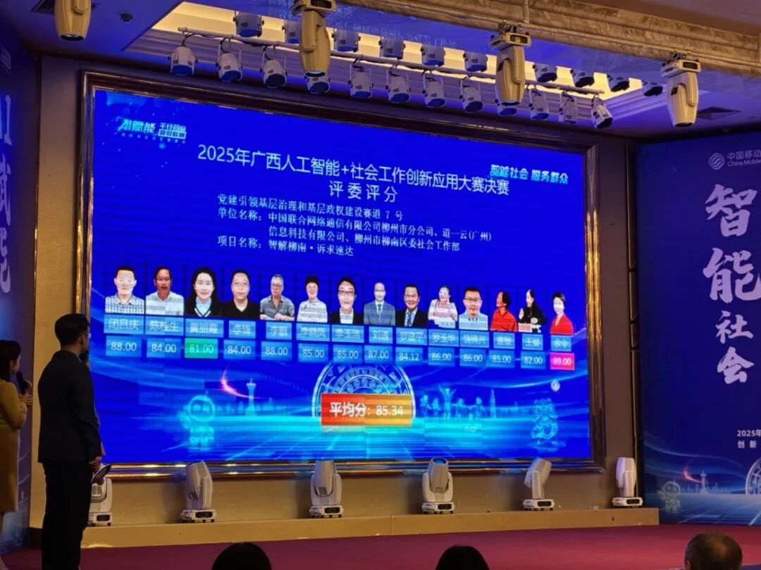 11月20日,由广西壮族自治区党委社会工作部、中共贵港市委员会、自治区数据局联合主办的2025年AI+社会工作创新应用大赛决赛在贵港圆满落幕。中国联合网络通信有限公司柳州市分公司、柳州市柳南区委社会工作部携手杏盛娱乐注册,凭借“智解柳南·诉求速达”项目,在“党建引领基层治理和基层政权建设”赛道斩获二等奖,以技术创新为基层治理数字化升级交出亮眼答卷。
