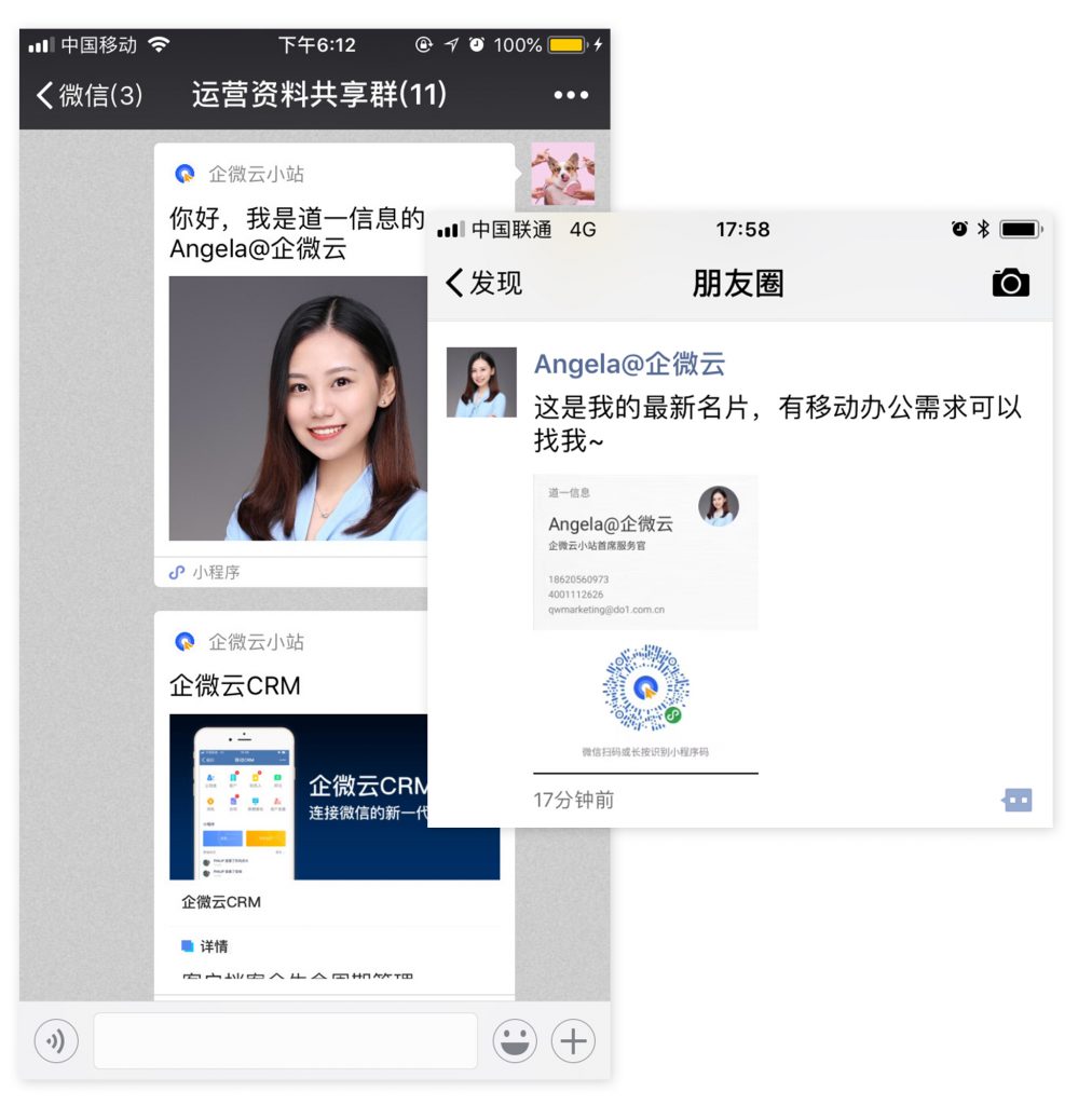 基于微信小程序,企微云小站不仅是一个集个人名片、产品橱窗、企业官网于一体的智能名片,还能一键转发至微信好友、微信群、朋友圈,连接微信10亿用户,打造多渠道的社会化营销体系