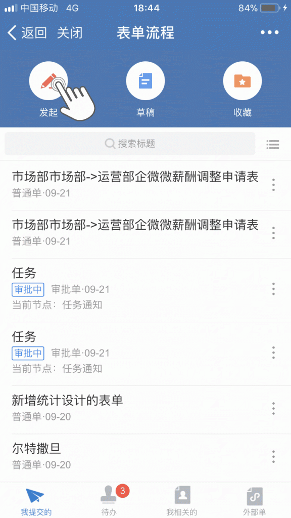 1、【内部单】首页(我发起的) > 发起表单 > 更多(列表的三个小点)