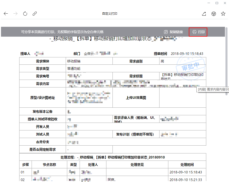 自定义打印,增加“审批状态章印”,可在打印模板中开启/关闭