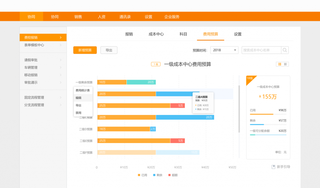 管理后台端—费控报销—费用预算