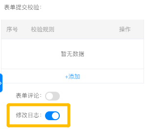 • 功能开启时,用户对于表单的任何修改操作,均会显示修改记录,且无法变更。