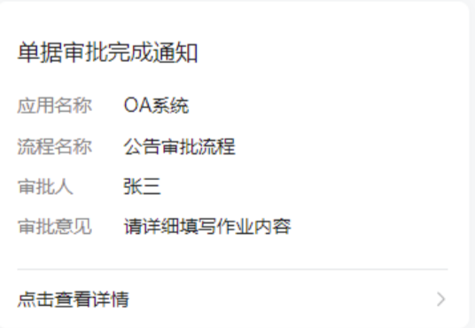 注:模板中没有的可以不填写,比如下图中的审批时间参数标识,模板中没有这个那就可以不用不填写,发出的消息里面就不包含这个信息。