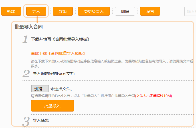 ★ 注意:通过后台新增的合同不需要经过流程审批,将直接生效。点击「新建」,填写合同信息