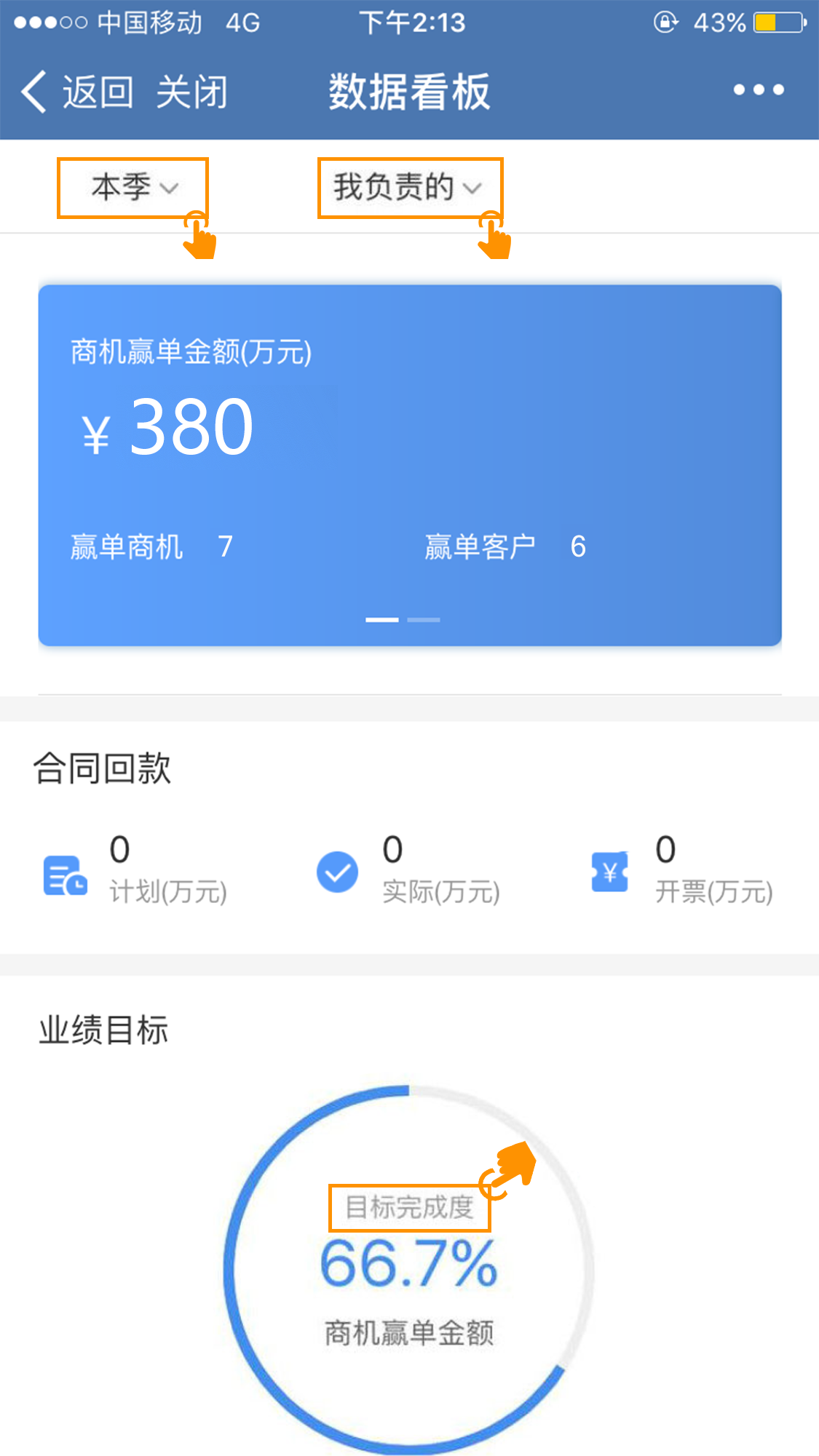 ① 目标类型可选择按照商机赢单金额/合同签约金额来统计